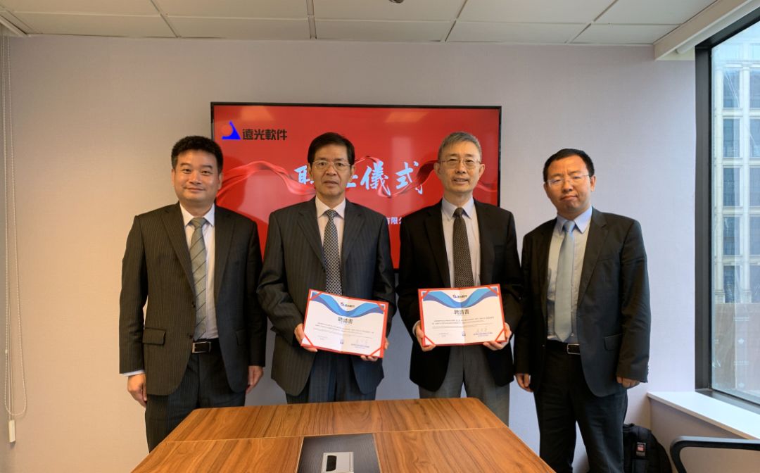 高级顾问聘任仪式上,总裁黄笑华代表公司向澳门科技大学副院长兼澳门科技大学商学院院长林志军教授、澳门科技大学资讯科技学院院长张渡教授颁发了远光信息技术(澳门)有限公司高级顾问聘任书。