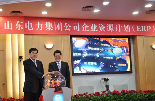 11月12日,山东电力集团公司企业资源计划(ERP)上线仪式隆重举行。国家电网公司总信息师吴玉生、山东电力集团公司总经理韩君共同启动ERP上线,这标志着作为山东电力ERP重要组成部分的财务管控系统在公司总部、各供电公司、超高压公司和专业单位正式成功上线运行。国家电网公司信息化工作部副主任王继业,山东电力集团公司领导孙可奇、钱平、张方正、商其德、刘清鑫、马士林、潘敬东,调研员于世昌、李培林,远光公司高级副总裁黄笑华以及其他咨询公司代表出席上线仪式。