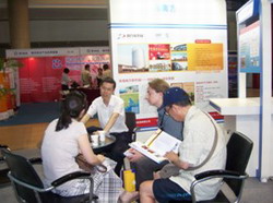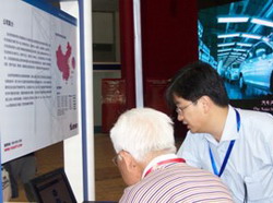 北京办事处葛林在远光展台向专家讲解 北京办事处秦桂海与比利时Stever Hillaert交流