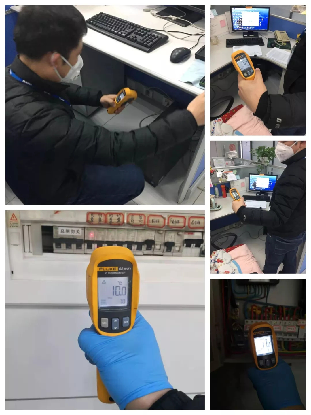 2月3日,公司领导到现场了解情况后,下达园区封闭式管理通知。从那天起,园区40多名留守同事,每人每天两次的体温测量,约1400台电脑主机、插座等设备每天 3次的测温,就交到了13人的保安小分队的身上,24小时3班制轮流值班。保安班长杨玉江已经半个月没有休息了。几次安全隐患都被他们发现、排除,保证了园区的安全。